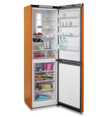 Вместительный двухкамерный холодильник Бирюса T980NF с морозильником, расположенным в нижней части.