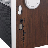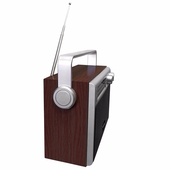 Радиоприемник легко взять с собой в дорогу. У него есть удобная складная ручка с сатинированным покрытием и телескопическая антенна. Питание возможно от сети или от встроенного аккумулятора на 1200 мАч. Корпус радиоприемника выполнен в покрытие тёмное дерево, что придает ему особую грацию.