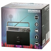 Благодаря динамику, мощностью в 3 Вт, современный радиоприемник Soundmax SM-RD2122UB может проигрывать музыку с очень чистым звуком без каких-либо помех. При помощи простых в управлении поворотных регуляторов и стандартной аналоговой шкалы можно осуществить быструю и качественную настройку радиостанций в семи диапазонах: AM, FM и SW. Одной из особенностей этой модели является наличие модуля Bluetooth. Устройство можно сопрягать со смартфоном или планшетом при помощи Bluetooth или шнура AUX