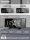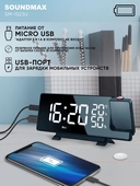 Зеркальные часы Soundmax SM-1523U, с проектором, сочетают в себе стильный современный дизайн и высокое качество. Красивая зеркальная поверхность, USB - зарядка, проекция времени на потолок или стену, регулировка яркости проектора и дисплея.