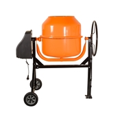 Барабан имеет объем 180 л, позволяющий замешивать до 130 л смеси за один цикл. Высокая мощность двигателя (800 Вт) обеспечивает эффективное перемешивание даже тяжелых составов. Для удобного опрокидывания барабана и быстрой выгрузки бетона используется штурвальное устройство.