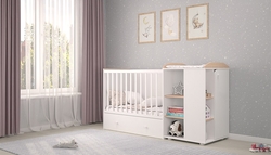 Трансформер включает в себя сразу несколько предметов мебели: пеленальный комод и кроватка.
