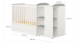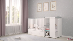 Трансформер включает в себя сразу несколько предметов мебели: пеленальный комод и кроватка.