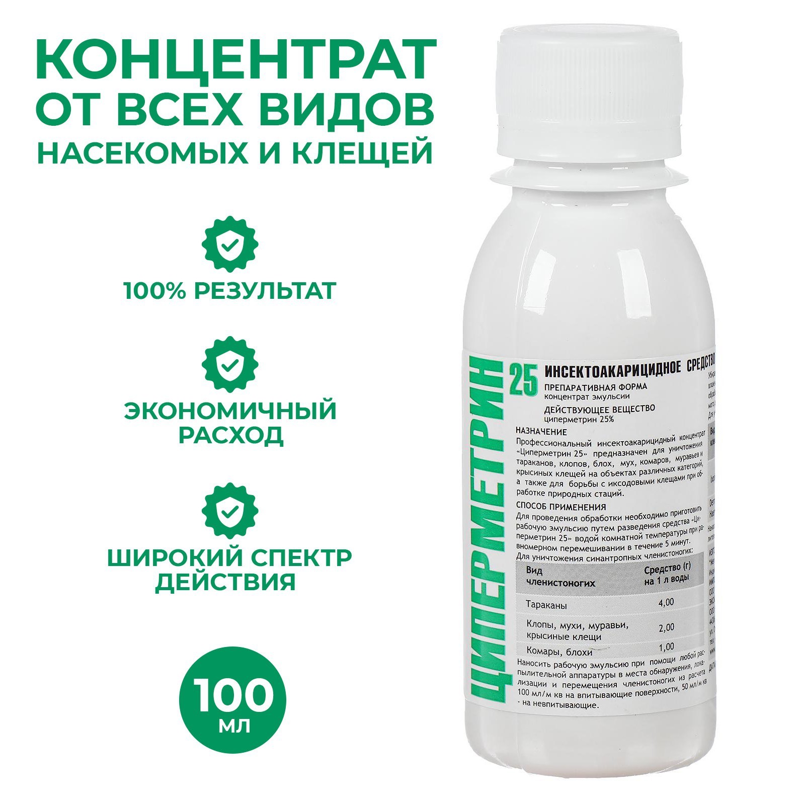 СОСТАВ: действующее вещество - циперметрин 25 (высокоактивное соединение группы паритроидов), отдушка, эмульгаторы, растворители