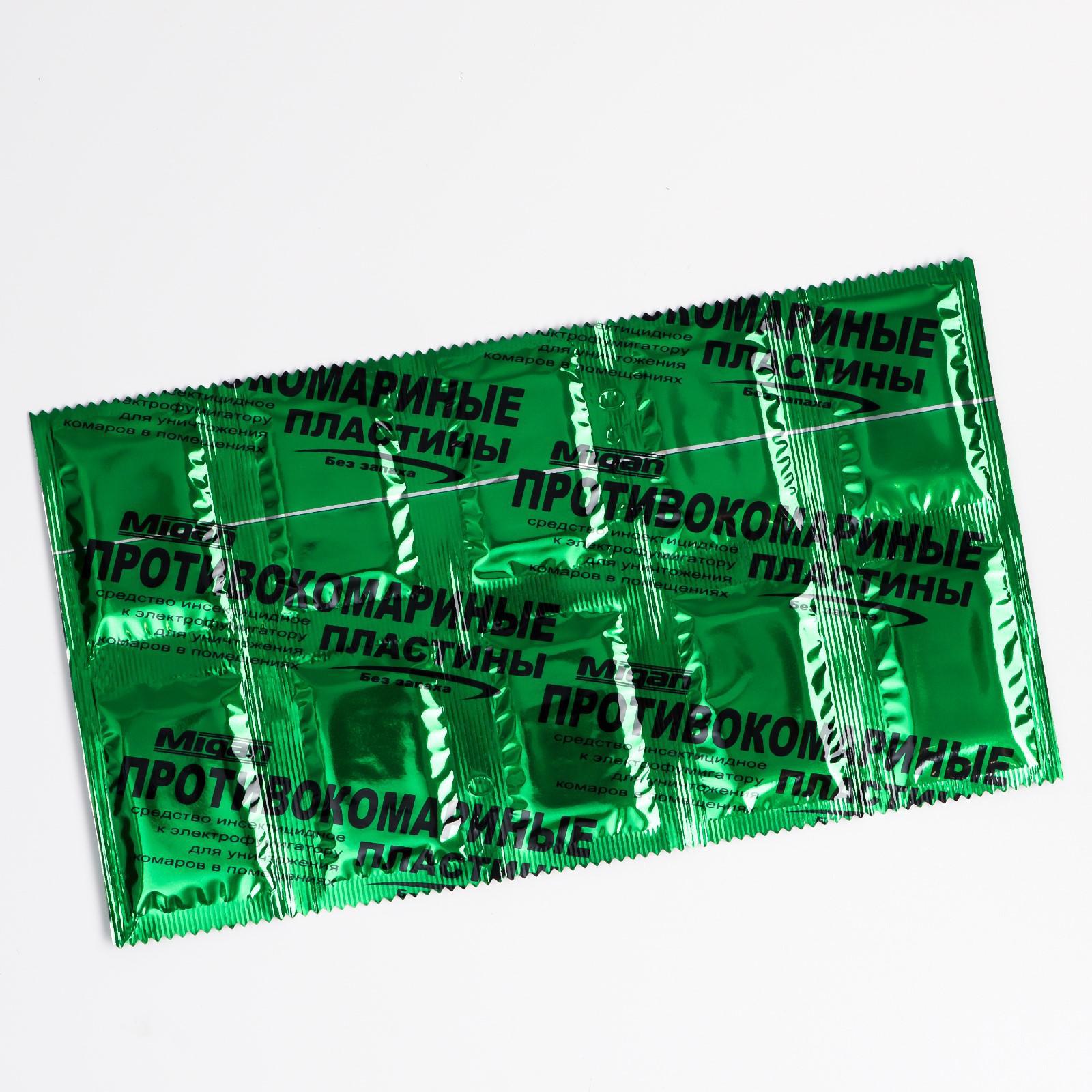 Пластины от комаров без запаха, зеленые, 10 шт 0159