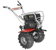 Усиленная рама позволяет увеличить прочность и жёсткость конструкции мотоблока. Для большей маневренности и эффективности модели предусмотрена возможность выбора скорости, а наличие заднего хода поможет вытащить его в случае застревания в земле. Топливный бак увеличенного объема обеспечивает продолжительную работу и сокращает количество перерывов для дозаправки.