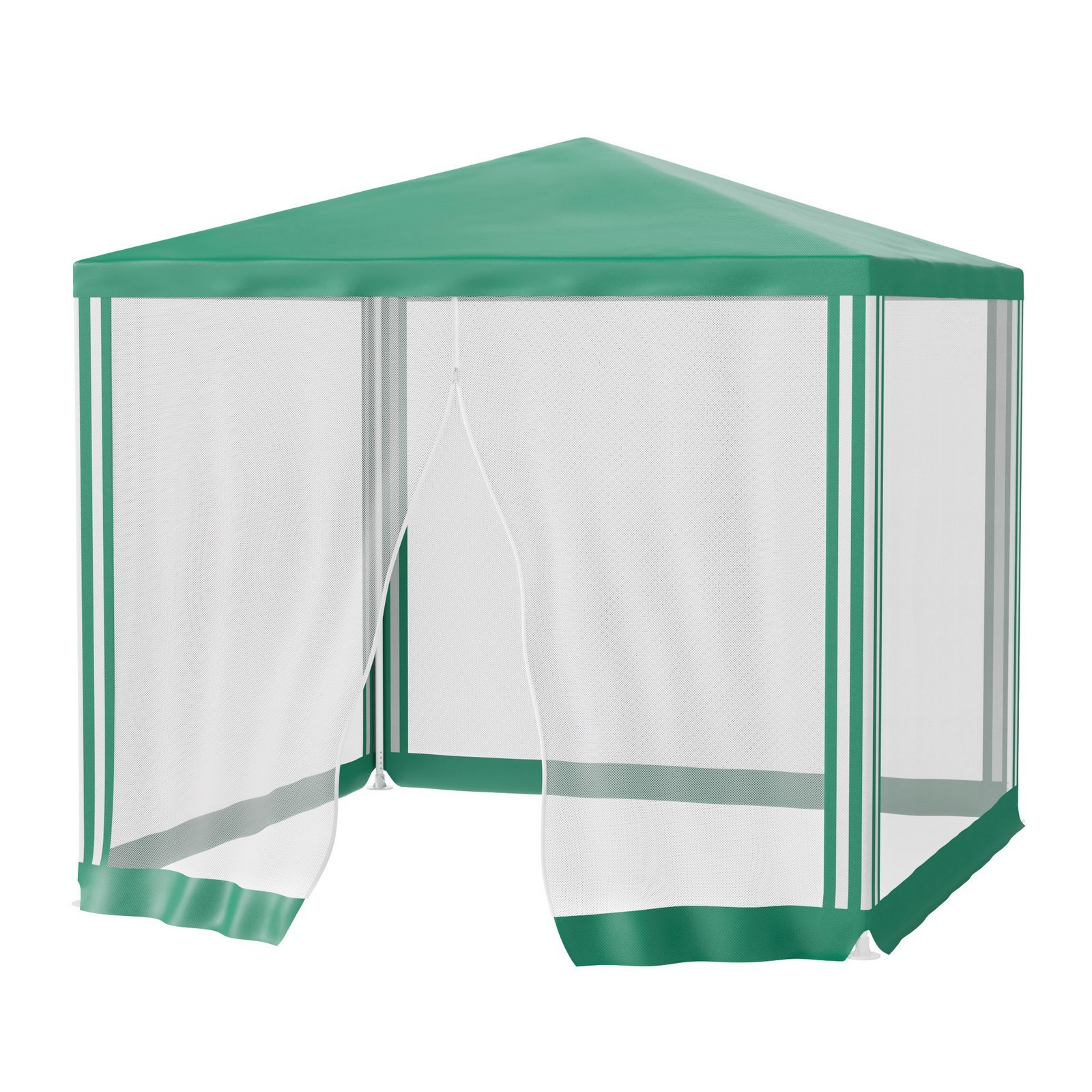Садовый тент с 4 сторон закрыт москитной сеткой, поэтому надёжно защищает не только от солнца, но и от насекомых и пуха.
