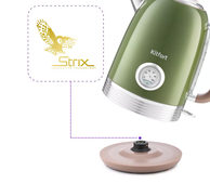 Чайник оснащён контроллером Strix - № 1 среди поставщиков компонентов для электрочайников. Он устраняет риски короткого замыкания и возгорания прибора. Обеспечивает защиту при закипании, при включении чайника без воды.