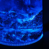 При включении чайника по периметру дна загорается подсветка, которая является индикатором работы и одновременно художественно подсвечивает воду.
