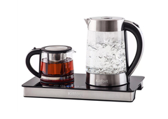 Стильный и функциональный набор Kitfort КТ-635 поможет вам не только вскипятить воду, но и заварить чай или кофе. В комплекте имеется вcё, что нужно для этого: электрический чайник объёмом 1,7 л, стеклянный заварник 800 мл, а также база. Кувшин для заварки изготовлен из термостойкого стекла и имеет съёмный фильтр для чая или кофе.