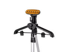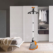 Вешалка и телескопическая стойка складные, паровой шланг съёмный, а корпус-компактный. Такая конструкция позволяет удобно хранить его в комнате или в шкафу. Корпус прибора оснащён колёсиками для удобного перемещения по квартире.