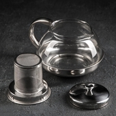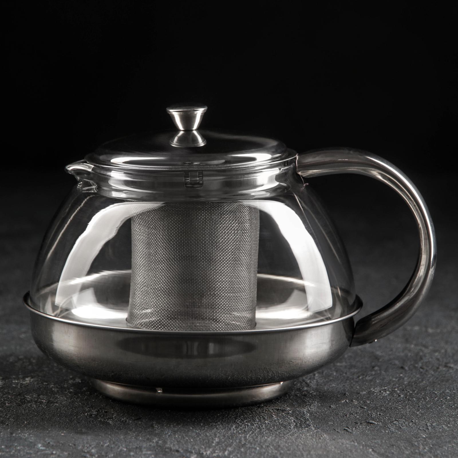 Чайник заварочный 1,0л. Металлик металл.сито, стекло/металл, кругл. 563250