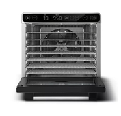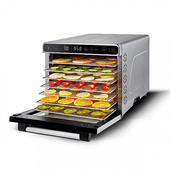 Сушилка для овощей и фруктов BQ FD1007 имеет 3 режима работы с температурным диапазоном от 35 до 75°С с шагом 5°С. Устройство также оборудовано таймером до 24 ч с шагом 30 мин. Управление дегидратором осуществляется с помощью информативного сенсорного LED дисплея. В данной модели предусмотрен горизонтальный способ подачи воздуха с режимом конвекции. Это решает проблему с возможными перепадами температур, поскольку горячий воздух поступает одновременно во все поддоны, и температура на всех уровнях сушилки одинаковая.