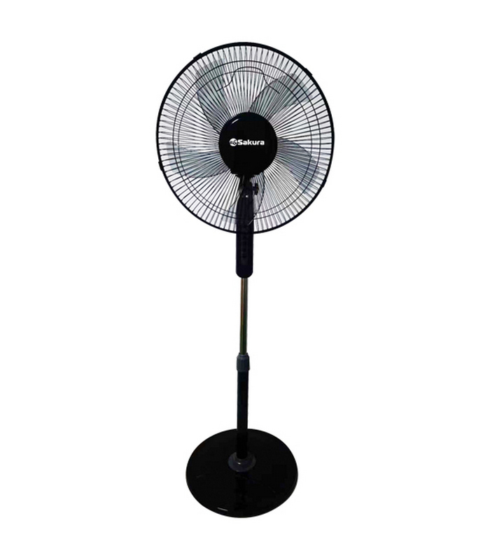 Большие лопасти, регулируемая высота и возможность кругового вращения головки делают напольный вентилятор Sakura SA-17BK незаменимым прибором.