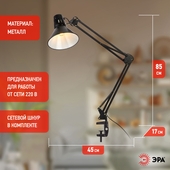Светильник настольный ЭРА N-121-Е27-40W-BK на струбцине, чёрный