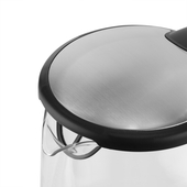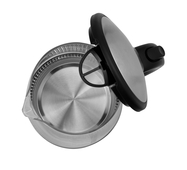 Пользоваться им очень удобно: он способен поворачиваться на 360°, а его крышка открывается механически, нажатием на кнопку. Съёмный фильтр, расположенный внутри носика прибора, защитит напитки от накипи. Нагревательный элемент прибора встроен в плоское дно и защищен стальной пластиной, поэтому ухаживать за устройством очень легко.