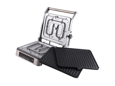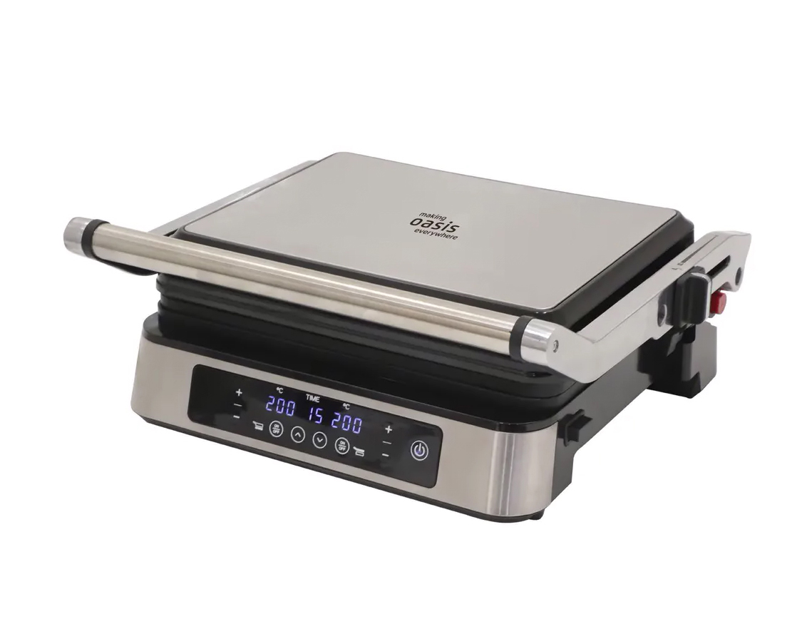 Электрический гриль Oasis GR-SR имеет мощность 2000 Вт, две съемные панели размером 29х23 мм с антипригарным покрытием. Прибор имеет регулируемый термостат и таймер. Открытие панелей на 180 увеличивает кулинарные возможности, возможна готовка сразу на 2 панелях. Отделка корпуса выполнена из высококачественной нержавеющей стали. Ручка в процессе готовки не нагревается.