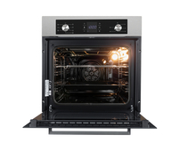 Механическое сенсорное управление, LED дисплей, встроенные таймер вентилятор, тангенциальное охлаждение и 7 режимов работы делают духовку очень функциональной и удобной в эксплуатации. Наличие гриля интересно для тех, кто любит блюда с зажаристой корочкой.
