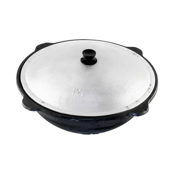 Казан чугунный 12л. JENNA 10415-JN круглое дно, алюм.крыш., Узбекистан