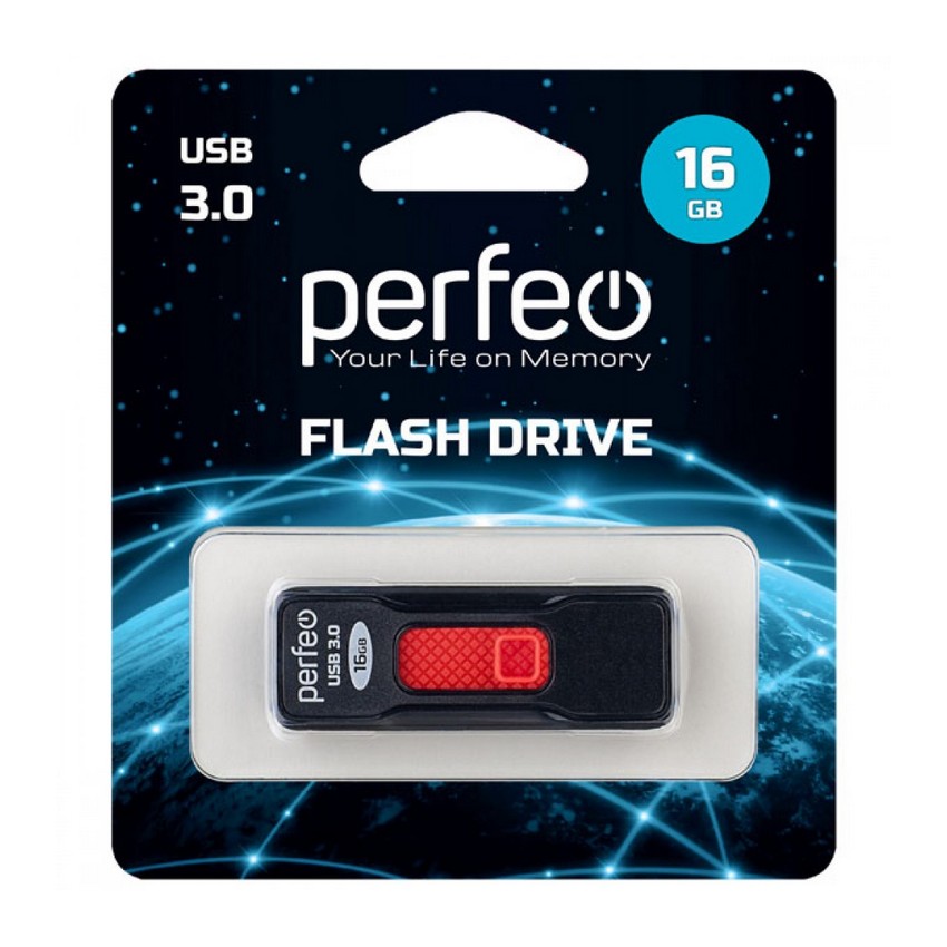 Высокоскоростной USB накопитель Perfeo USB 3.0 модель S05 с выдвижным коннектором, объёмом памяти 16GB, чёрного цвета имеет компактный размер.