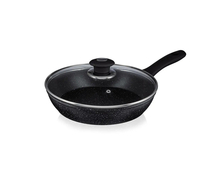 Сковорода BEKKER ВК-7861 изготовлена из высококачественного кованого алюминия с внутренним антипригарным черным мраморным покрытием. Внутри антипригарное мраморное покрытие, снаружи жаропрочное мраморное покрытие. Ручка бакелитовая с покрытием Soft touch. Подходит для использования на всех типах плит и чистки в посудомоечной машине.