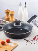 Сковорода d24 BEKKER BK-7861+крышка, кован.алюм., мраморн.покр., д/индукции