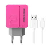 СЗУ 2400mAh More choice 2USB + micro USB NC46m Pink 1м