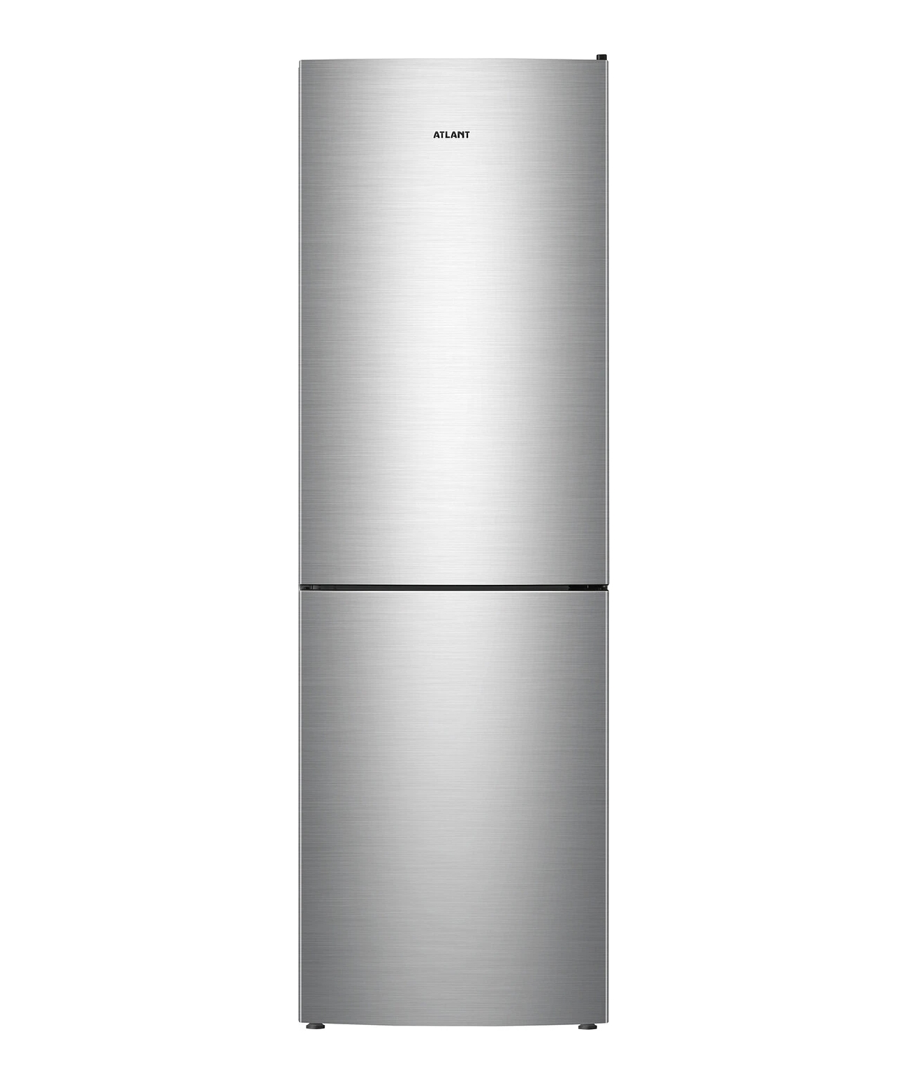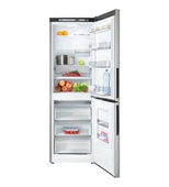 Двухкамерный холодильник Атлант ХМ 4621-141 выполнен в цвете "нержавеющая сталь". Морозильная камера расположена в нижней части.