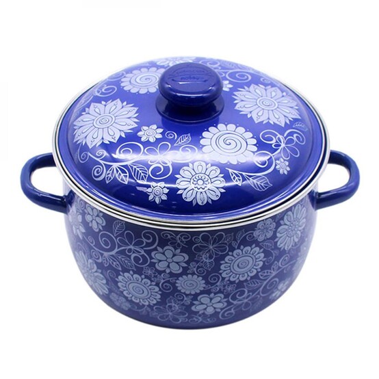 Кастрюля 4,0л. 3MC201Р эмаль синяя с рис. Серебряный узор