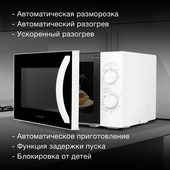 Для приготовления различных блюд, в том числе с хрустящей корочкой, разморозки и разогрева продуктов может использоваться отдельно стоящая микроволновая печь Hyundai HYM-M2067 мощностью 700 Вт. Объем камеры равен 20 л. Представлено механическое управление. Камера имеет термостойкое эмалированное покрытие, простое и удобное в уходе. Дверца открывается с помощью ручки. Конструкцией предусмотрены прочные ножки, которые обеспечивают устойчивость печи на рабочей поверхности. Настройки выполнения операций можно контролировать на лицевой панели устройства.