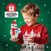 *Конструктор 140 дет. блочный "Новогодние истории. Белый Медведь с подарком" UNICON 7820372