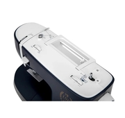 Свободный рукав позволяет работать с узкими деталями, такими как манжеты и воротники, а дополнительный регулятор нажатия лапки, скрытый за крышкой игловодителя, позволяет настраивать машину для более сложных задач.