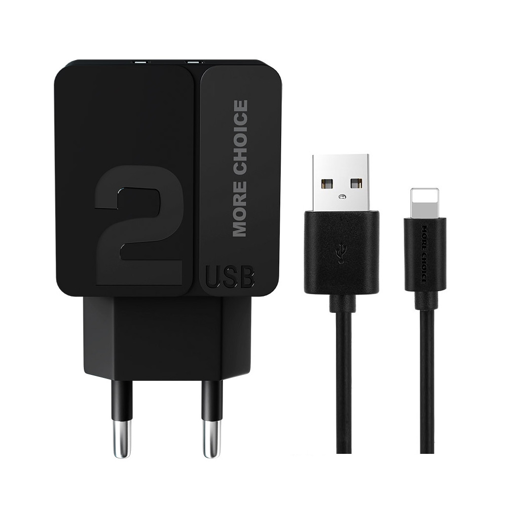 СЗУ 2400mAh More choice 2USB + Lightning 8-pin NC46i 1м Black