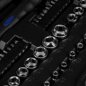 Набор инструмента РОКОТ из 128 предметов это высококачественные инструменты из углеродистой стали для ремонта и монтажа. Могут использоваться для ремонта транспортных средств, а также для мелких работ по дому. В состав набора входят: 5 комбинированных ключей, 16 шестигранных ключей, 30 торцевых головок разных размеров и профилей, ключ-трещотка, биты, отвертка-удлинитель, разводной ключ, молоток, отвертки для точечных работ, плоскогубцы, рулетка, переходники, крепеж 43 шт. Каждый предмет в кейсе имеет свое место, что делает процесс использования максимально комфортным. Инструменты имеют большой запас прочности и износостойкости, поэтому прослужат долго.