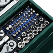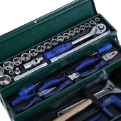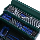 Универсальный набор РОКОТ из 135 предметов в железном кейсе это незаменимый комплект для домашнего мастера, а также для автовладельца. Содержит все необходимое для мелкого ремонта, монтажных работ и для обслуживания транспортных средств. Набор включает слесарный молоток, ножовку, разводной ключ, плоскогубцы, трещоточные, накидные и гаечные ключи, различные типы бит. Все предметы выполнены из высококачественной углеродистой стали с длительным ресурсом службы и высоким запасом прочности. Раскладной железный кейс обеспечит компактное и комфортное хранение.