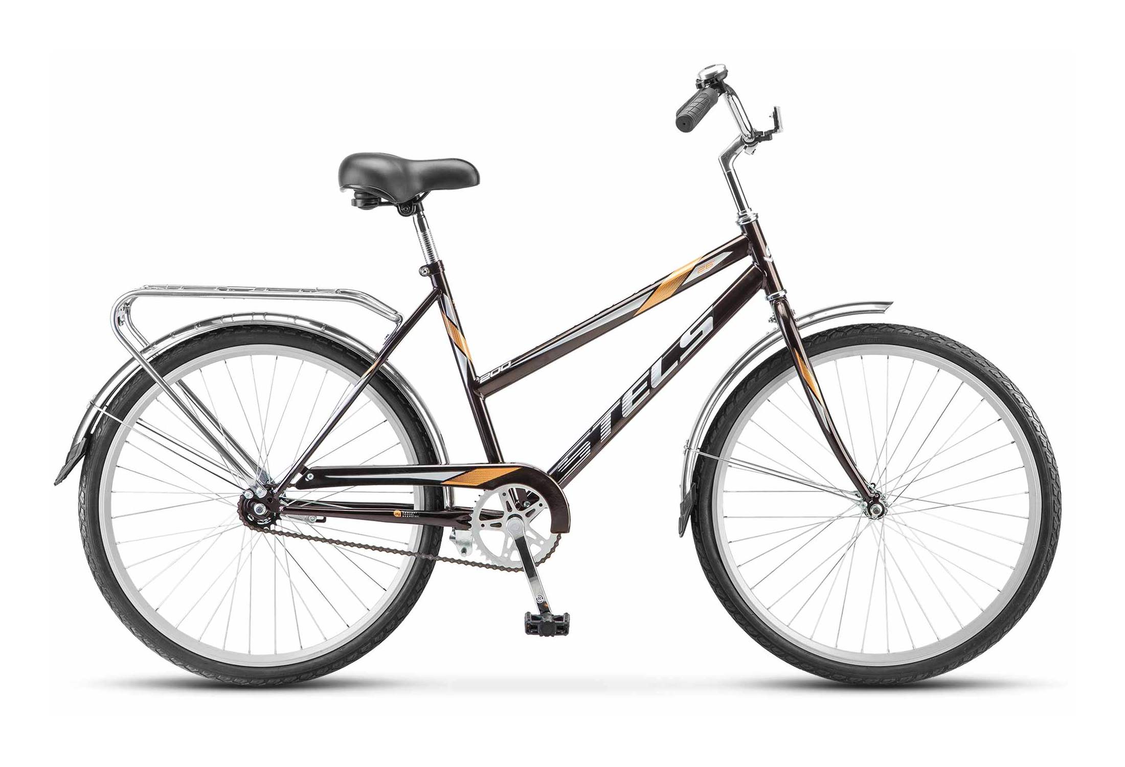 Велосипед STELS Legenda 200 — это идеальный выбор для тех, кто ценит комфорт и стиль в городских поездках. Его дорожный дизайн и коричневый цвет придают ему элегантный вид, который отлично вписывается в городской ландшафт.