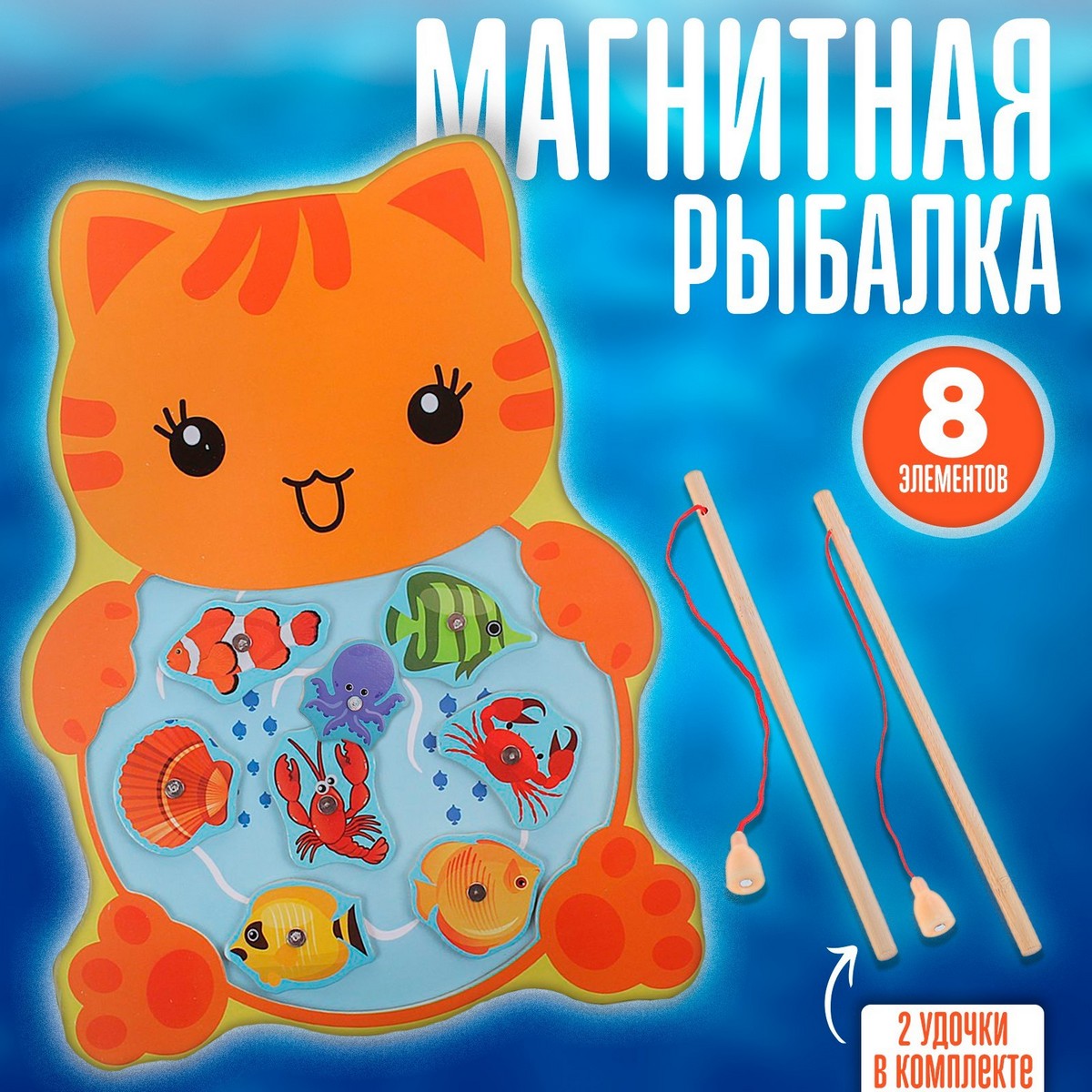 *Игра-Рыбалка магнитная "Котёнок" 2 удочки 1557007