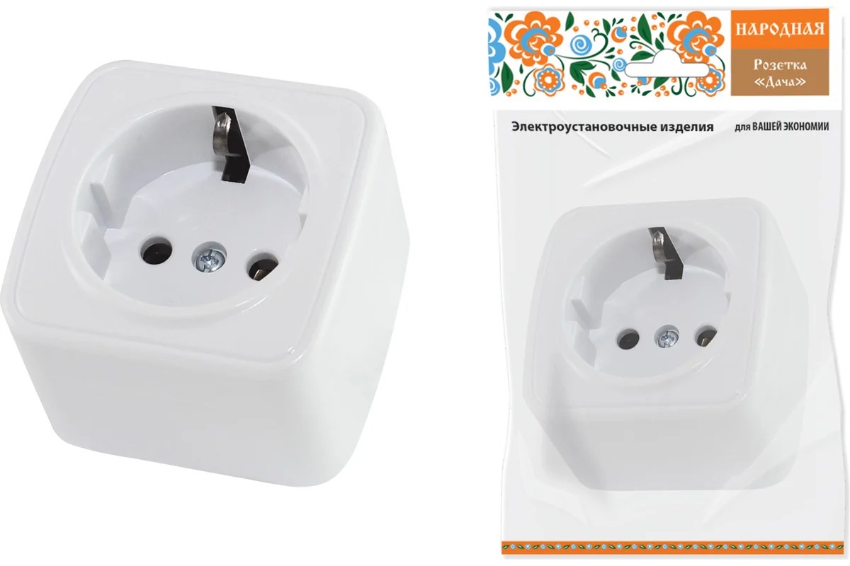 Розетка 1М О/У Дача с заземл.конт., 16А, IP20, белая TDM SQ1824-0008