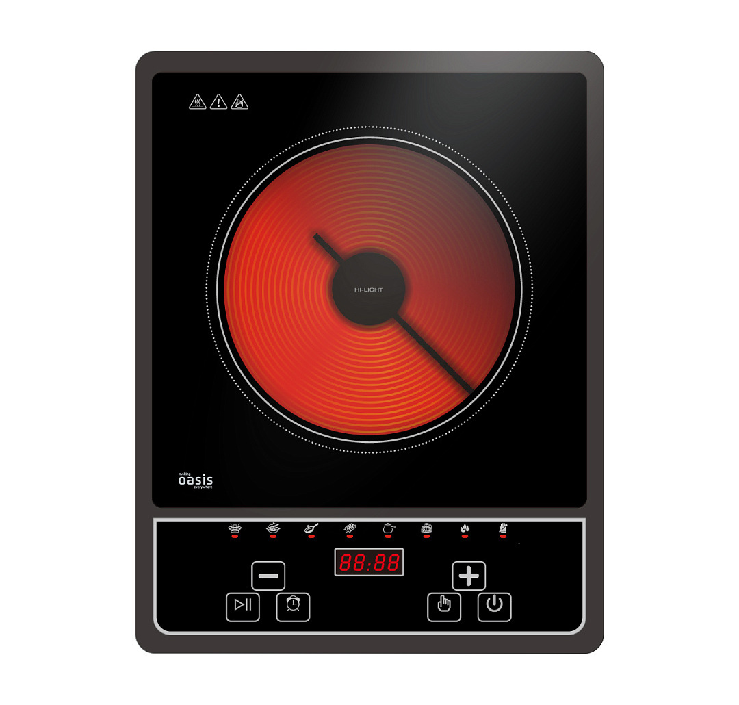 Настольную плиту можно без труда перенести на другое место, а если в ней нет необходимости, спрятать в шкаф. Несмотря на небольшие размеры, настольная электрическая плита making Oasis everywhere совмещает в себе весь необходимый функционал.