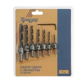 Набор сверл с зенкером ТУНДРА, 3-4-5-6-7-8-10 мм, 7 шт. 4506447