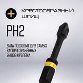 Бита ТУНДРА Torsion PH2 50мм круглыймагнитный фиксатор,7070902
