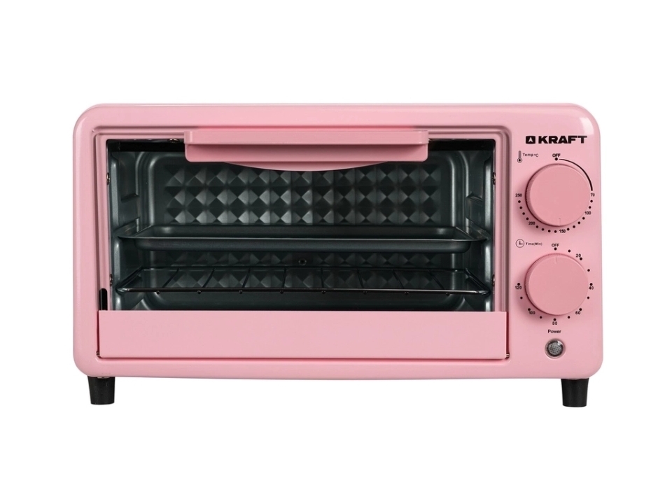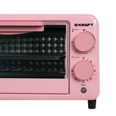 Мини-печь Kraft KF-MO90 НР в розовом цвете объёмом 9 литров. Мощность 600 Вт обеспечивает быстрый нагрев. Максимальная температура нагрева 250 C° и хорошая теплоизоляция подходит для выпечки хлеба, мясных и рыбных блюд.