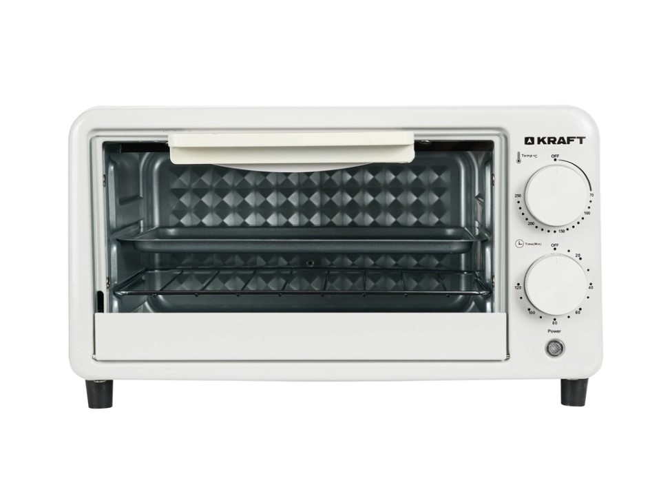 Мини-печь Kraft KF-MO90 НW в белом цвете объёмом 9 литров. Мощность 600 Вт обеспечивает быстрый нагрев. Максимальная температура нагрева 250 C° и хорошая теплоизоляция подходит для выпечки хлеба, мясных и рыбных блюд.