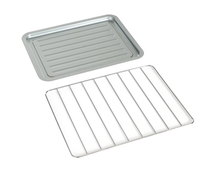 Благодаря дверце из закаленного стекла вы с лёгкостью сможете контролировать приготовление блюда. Таймер со звуковым сигналом уведомляет о завершении процесса. В комплект входят: глубокий прямоугольный противень и решетка.