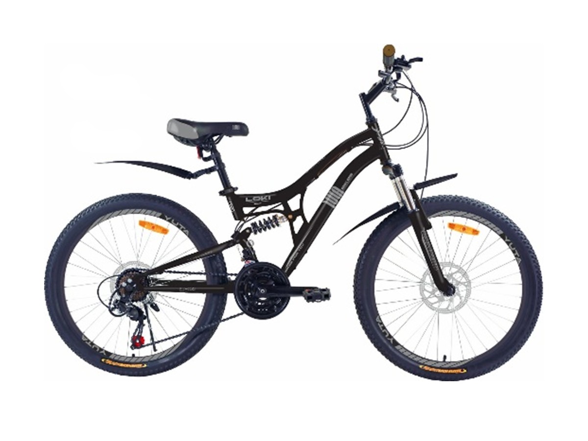 Велосипед 24" YUTA Loki двухподвес, рама 14", 21ск., диск.торм., чёрный/серый