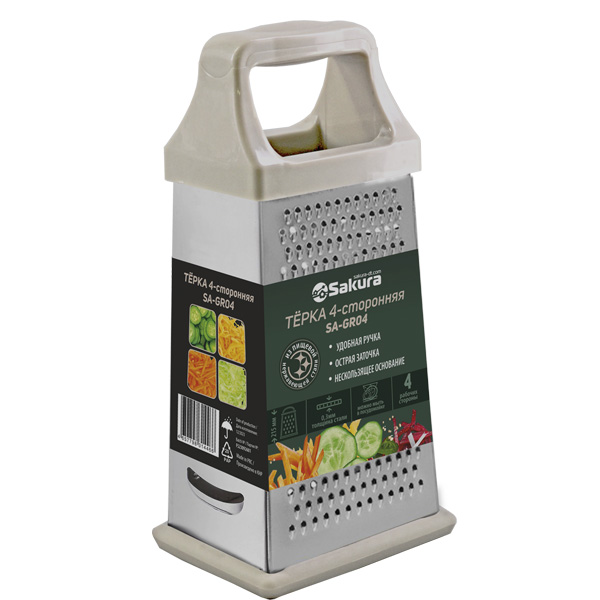 Тёрка 4-ёх сторонняя 21,5см., нерж.сталь, нескольз.основ. SAKURA SA-GR04