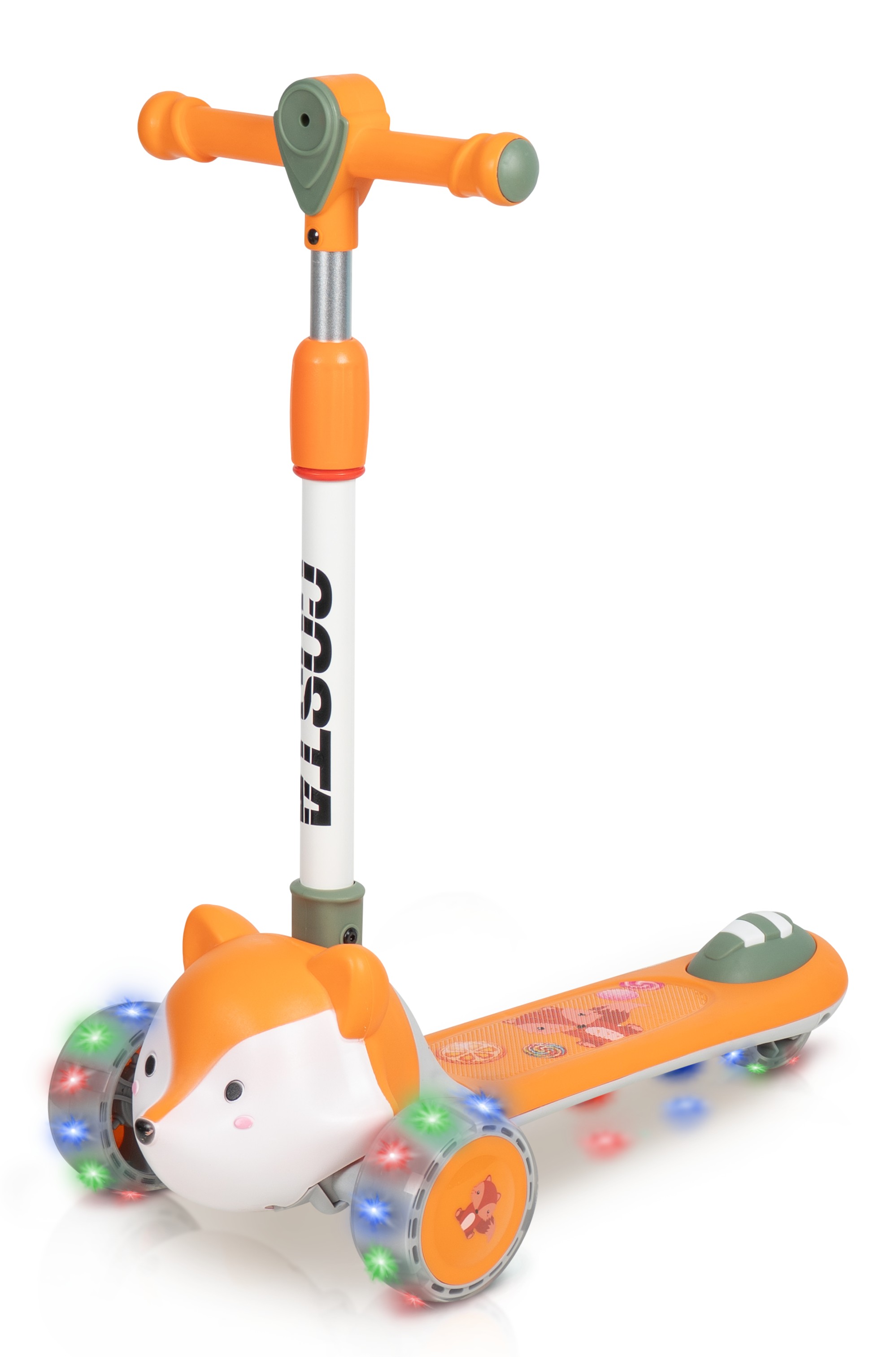 Самокат 3-ёх кол. Farfello F111 Лисичка складной, руль 65-80см., светящ.кол., оранжевый