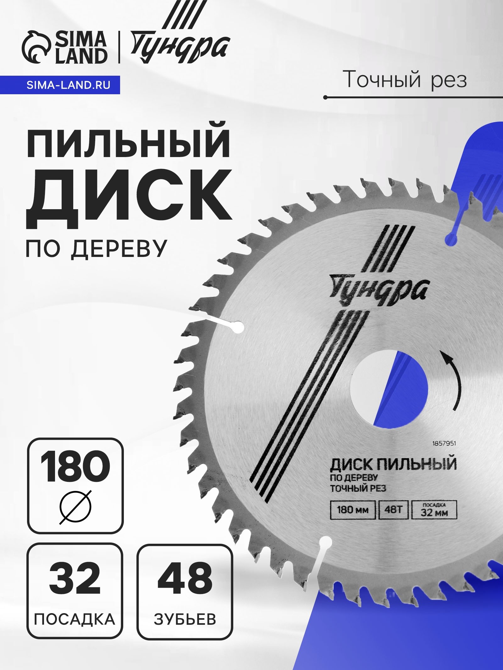 Диск пильный по дереву TUNDRA 180*32*48Т/ зуб 1857951