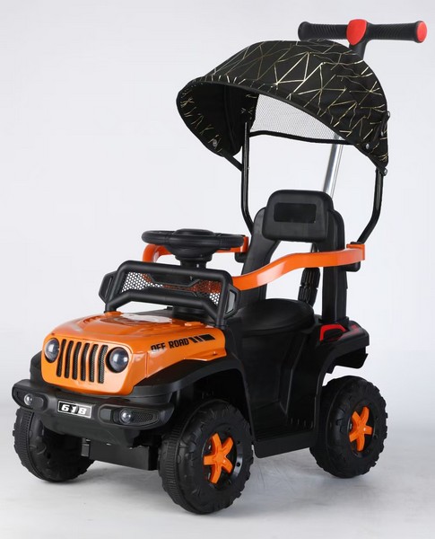 Машина на аккумуляторе IT110760 Джип род.ручка, крыша-тент, оранжевый