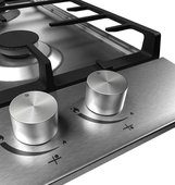 Чугунные решетки в комплекте отличаются своей прочностью и продолжительным эксплуатационным сроком. Простое управление реализовано посредством надежных механических переключателей. Если отсутствует электричество, то конфорки можно аккуратно поджечь спичкой, предварительно подав на них газ.
